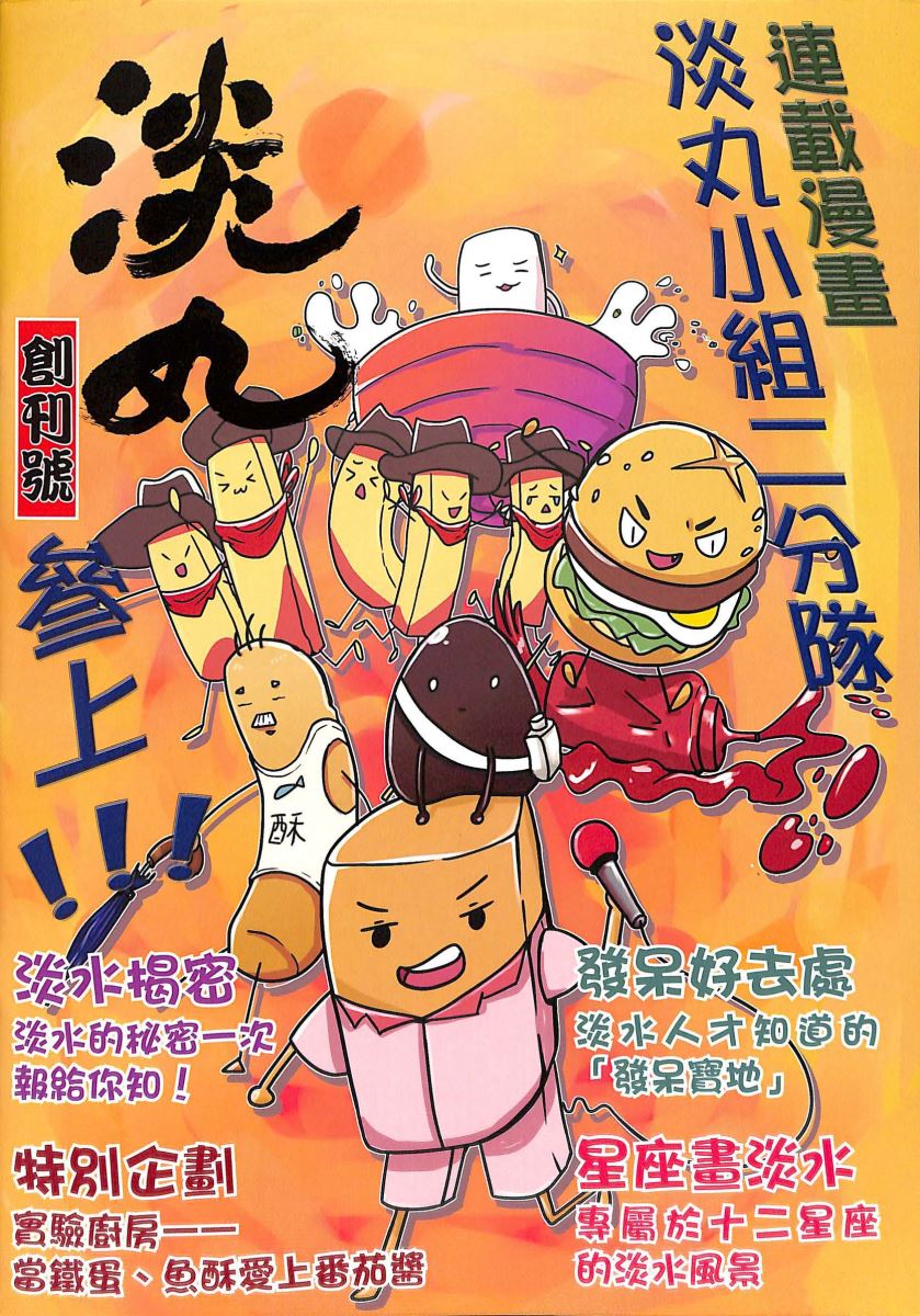 「淡丸」系列起訖自2016年,由圖像漫畫研究室所經營。以連環漫畫與四格漫畫為主要敘事載體,藉由將魚丸、阿給與鐵蛋等著名淡水名產和食物擬人化,讓輪廓簡單、形象鮮明的食物圖像,精力旺盛地活躍在淡江校園甚至淡水各地,力求以詼諧輕鬆的方式,展現成員們對淡江學生日常生活的觀察。 「淡丸」系列也以插圖和簡短文章組合的雜誌方式,鎔鑄淡水觀光文化、闡釋淡江文學院自由活潑的教學特色。
